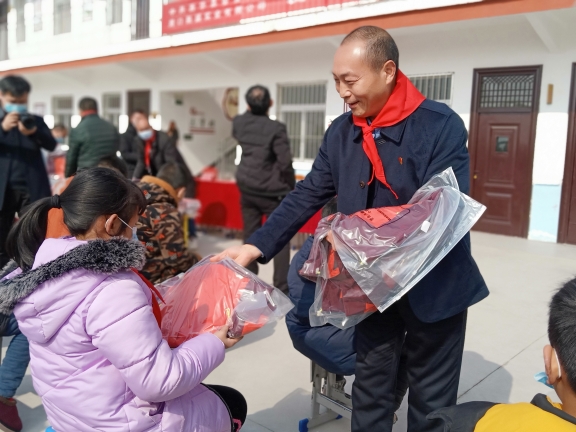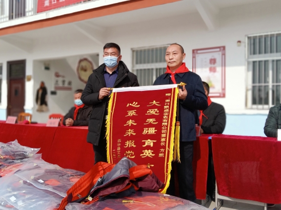 春節(jié)臨近,方凱自掏腰包6萬余元,購買164套新校服捐贈給西華縣艾崗鄉(xiāng)半截樓小學(xué),一如既往地將大愛播撒與傳遞。說起方凱的愛心行動,那是不勝枚舉。方凱10余年來堅持幫貧濟困,每年都采取不同的方式,為貧困戶、貧困大學(xué)生、環(huán)衛(wèi)工、留守兒童、敬老院、貧困學(xué)校、福利中心智障孩子和災(zāi)區(qū)等進行愛心捐助,已經(jīng)累計捐款捐物達1600多萬元。為了表達對方凱的謝意,西華縣艾崗鄉(xiāng)半截樓小學(xué)向方凱贈送了“大愛無疆育英才,心系未來報黨恩”的錦旗,同時,還鄭重聘請方凱為該校名譽校長。