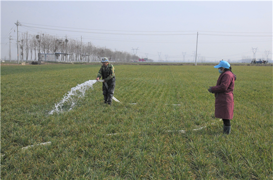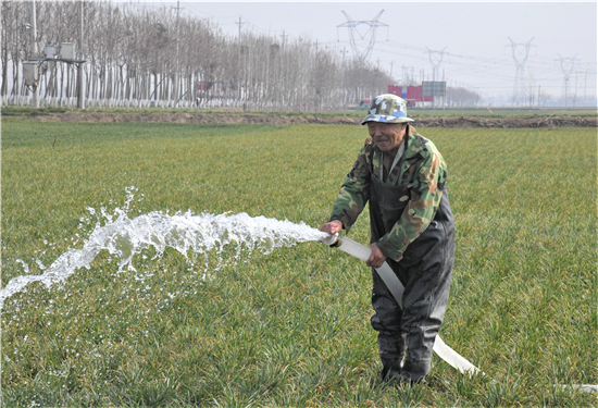春節前夕,豫東大地旱象抬頭,全國超級產糧大縣商水縣農業部門一邊聘請市、縣專業技術人員實地指導,一邊動員農民迅速投入以抗旱澆麥、化學除草為重點的麥田管理工作。許多農民匆匆買完年貨就開始下地抗旱澆麥,隨處可見農民運水泵、擺管子、疏溝渠的身影,萬頃麥田一派繁忙景象。
