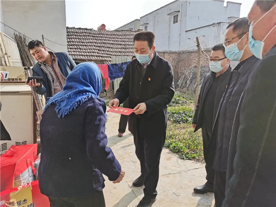 隨后,閆立超來到賈寨行政村,看望困難群眾賈國永和高鳳英。在賈國永家,閆立超為他遞上慰問金,親切與她交談,細心了解賈國永目前生活生產狀況。