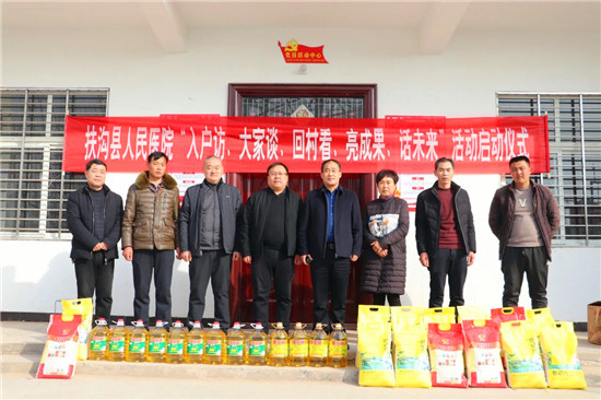 2月8日上午,扶溝縣人民醫院黨委書記、院長何躍東,副院長徐冰、王月鳳、齊建平,帶著米、食用油等慰問品到曹里鄉刁灣村開展“話脫貧、感黨恩、奮進新時代”主題活動,送去新春的祝福。