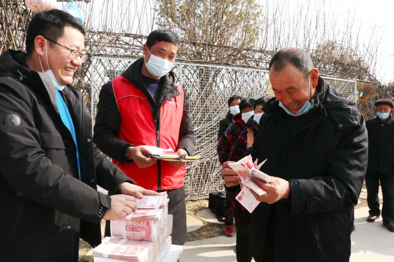 宋傳東、宋建超、王龍、魏端明、張鳳云......村民們領(lǐng)過錢,歡笑著離開現(xiàn)場。當(dāng)日,合作社向村民們發(fā)放了150萬元的租金、工資和分紅。涉及城郊鄉(xiāng)池莊行政村的宋莊、毛莊、王菜園和大于行政村的常莊、楊莊等9個自然村,共計400戶村民。