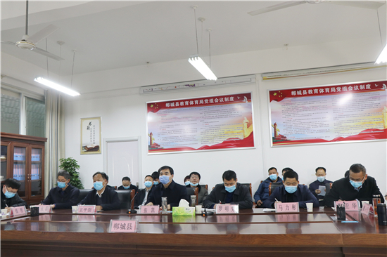 2月18日上午,全市教體系統疫情防控工作電視電話會議召開。鄲城縣政府副縣長張凱,縣教體局黨組書記、局長羅明黨在鄲城分會場收聽收看后,立即召開會議,貫徹落實全市會議精神,部署全縣教體系統疫情防控工作。