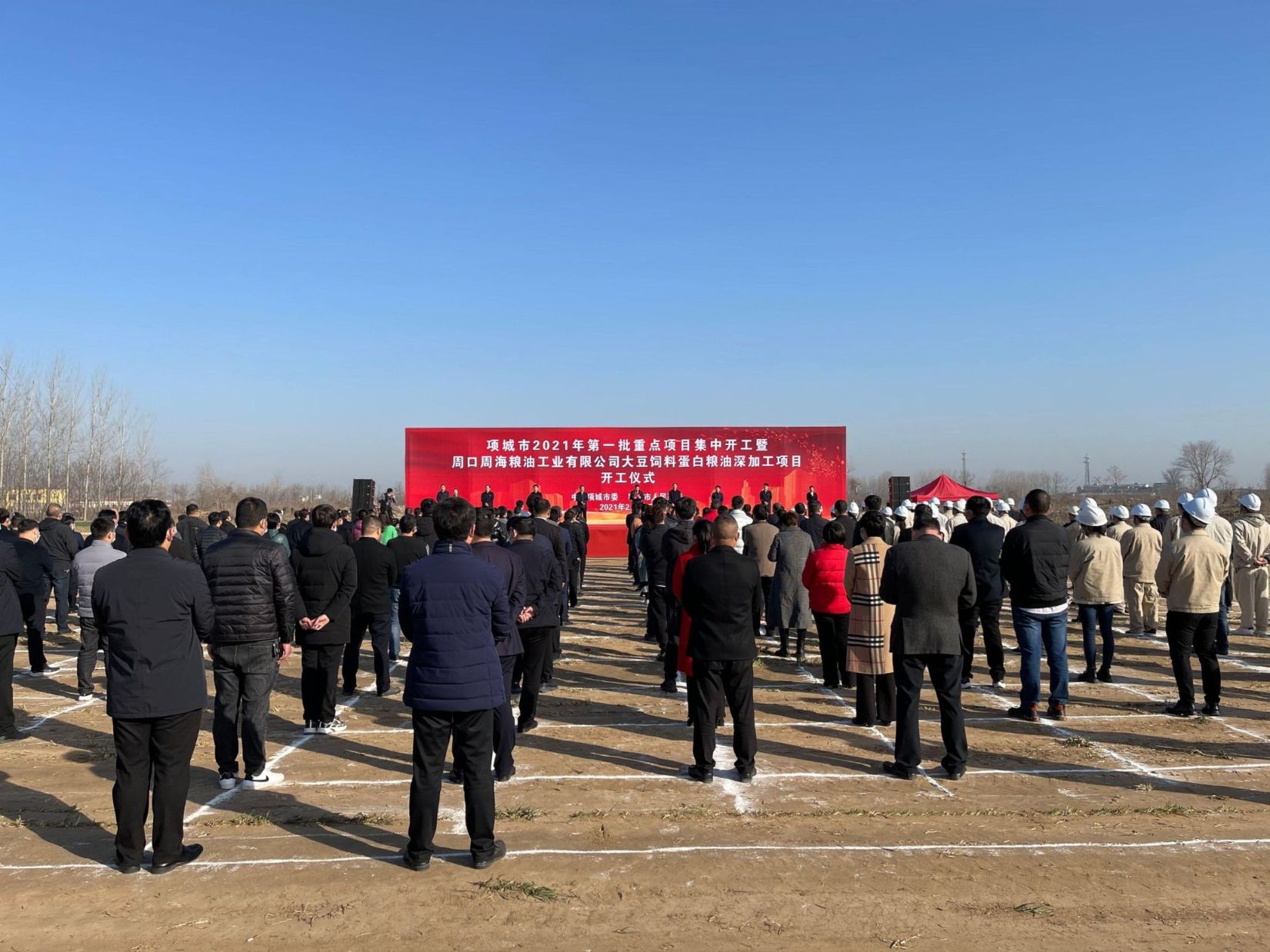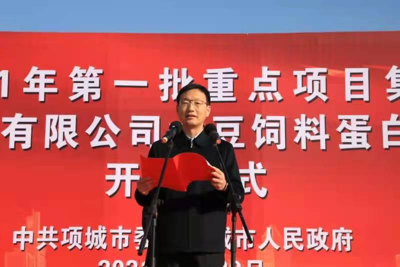 2月20上午,項城市2021年第一批重點項目集中開工暨周口周海糧油工業有限公司大豆飼料蛋白糧油深加工項目開工儀式在產業集聚區舉行,項城市委書記趙丹、市長王富生和市領導劉體峰、王玉玲、張森、毛磊、陳志、張愛玲、韓衛東出席儀式。