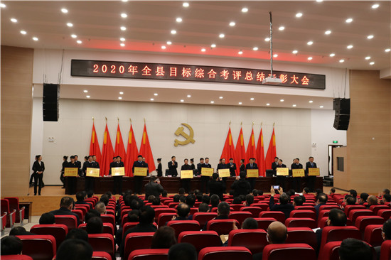 會議宣讀了《關于2020年度縣管領導班子綜合考評結果的通報》《關于給與縣衛生健康委員會通令嘉獎、魏軍同志記三等功獎勵的決定》《關于對為鹿邑獲得省部級以上榮譽做出突出貢獻單位通令嘉獎的決定》《關于印發<鹿邑縣2021年推進高質量發展目標綜合考評辦法>的通知》。會議還對2020年度目標綜合考評優秀單位、獲得省部級以上榮譽做出突出貢獻單位進行了頒獎。