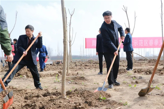又是一年春光好,植樹造林正當時。3月10日上午,周口市城鄉一體化示范區2021年春季義務植樹活動在建業綠色基地舉行。此舉也標志著全區國家森林城市、國家生態園林城市、全國文明城市創建工作再次吹響沖鋒號。區黨工委書記閆立超、區管委會主任張建黨等區領導班子來到義務植樹點,與干部職工一同義務植樹,為示范區的環境美化增綠添彩。