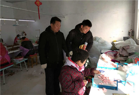 王東華了解到,本村在外務工人員多在南方從事羊毛衫加工,具有人才和技術優勢。他鼓勵村黨支部書記黨紅濤在本村原有零星服飾加工的基礎上,整合資源成立輝祥服飾有限公司,擴大生產規模,帶動大家致富。他還同黨紅濤一起外出考察購置新型縫盤機,聘請杭州服飾設計公司做技術和銷售顧問,對接銷路。由于加工羊毛衫縫盤機占用空間不大、機器輕便,公司實行“公司+農戶”模式,讓貧困群眾在家進行初加工,然后送到廠房進行拼裝,計件付酬,僅此一項就帶動50余名貧困群眾就業,人均月收入4000元以上。按照這個模式,董村又辦起玩具加工廠等企業。他還和村“兩委”班子通過整理閑置土地,對外承包,增加村集體收入25萬余元。