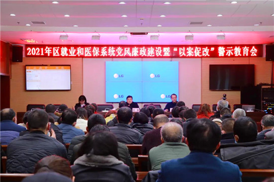 會議以觀看就業和醫保系統警示教育片開始,周邊某縣騙保案件和醫保領域違規違法典型案件的播放,以案說法,案件為鑒,與會人員受到一次深度教育。
