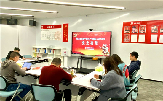 圖為西華縣駐鄭州市金水區流動黨支部正在認真收看黨史講座。