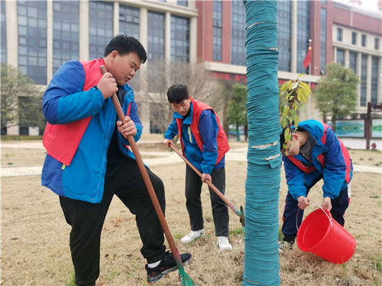 3月12日,周口經(jīng)濟(jì)開發(fā)區(qū)實(shí)驗(yàn)學(xué)校開展以“綠色環(huán)保、美化校園”為主題的植樹節(jié)實(shí)踐體驗(yàn)活動。活動將學(xué)習(xí)知識與勞動實(shí)踐結(jié)合起來,通過召開綠色環(huán)保主題班會,號召學(xué)校環(huán)保志愿者給校內(nèi)樹木澆水、松土、施肥,清理校內(nèi)外綠化帶中的枯草、雜物等,用實(shí)際行動踐行“愛綠護(hù)綠”,進(jìn)一步增強(qiáng)了學(xué)生的環(huán)保意識,提高了學(xué)生的道德水平和文明素質(zhì)。③7