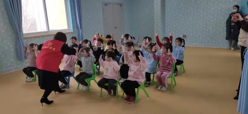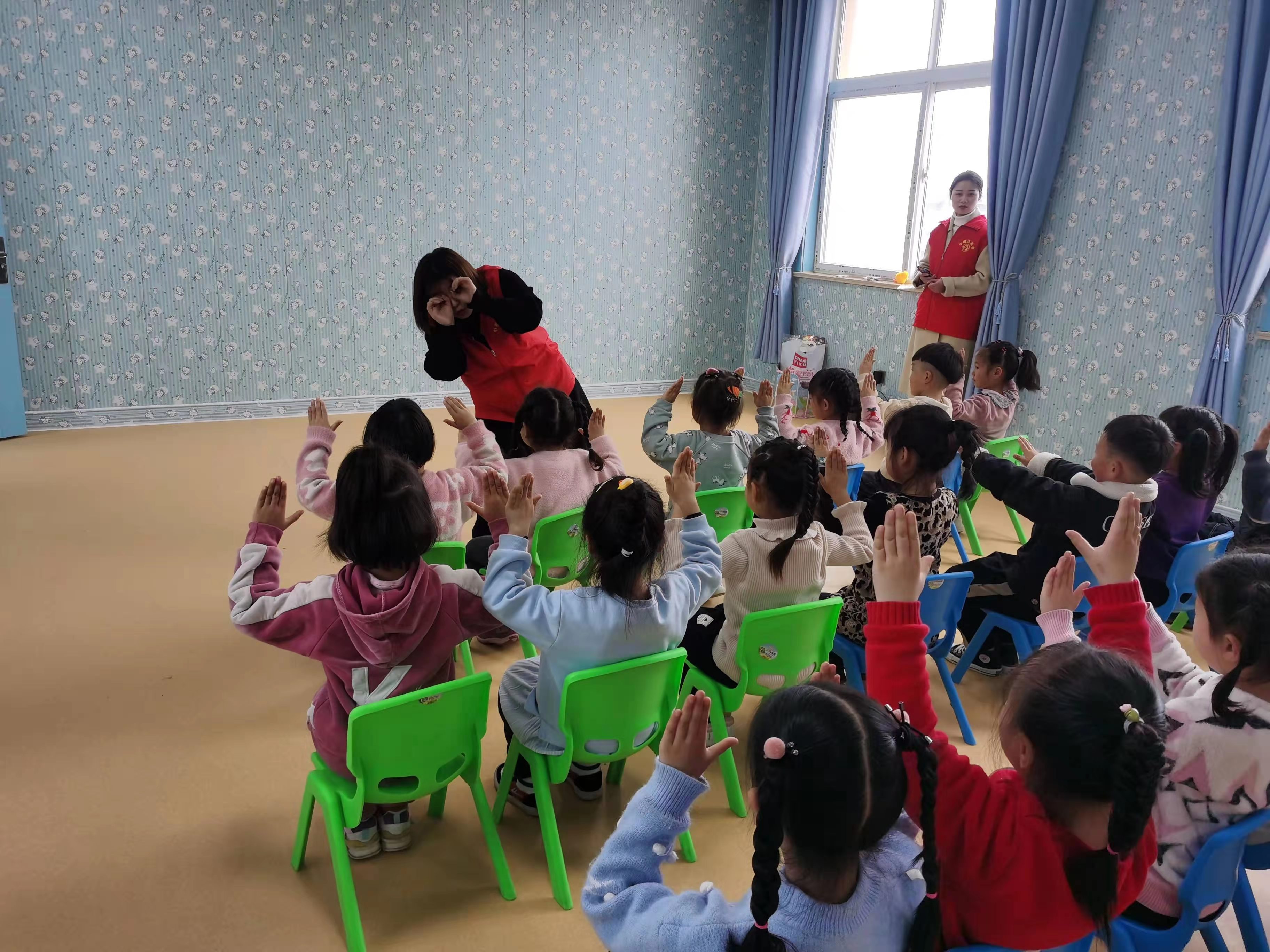 活動中,媛藝藝術學校的巾幗志愿者帶領20余名孩子進行了熱身游戲“葫蘆娃”,調動起孩子們的積極性。 隨后,讓孩子們跟著模仿學習10余種動物的聲音,并為學生們教授普通話,通過糾正孩子發音、吐字,完善孩子普通話,鼓勵孩子學會溝通,交流,培養孩子們的自信心。