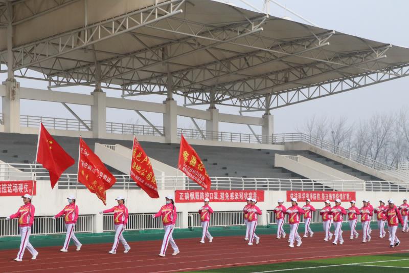 浩浩蕩蕩的拉練隊(duì)伍分成七大方陣,三列縱隊(duì)繞著體育館出發(fā)。上清湖健步隊(duì)、閆溝河健步隊(duì)、蒲公英健步隊(duì)、王皮溜健步隊(duì)、渦北健步隊(duì)、東城健步隊(duì)隊(duì)列整齊高呼口號(hào)繞場(chǎng)一周。500余人迎著朝陽(yáng),邁著堅(jiān)定有力的步伐,意氣風(fēng)發(fā)地踏上拉練的征程。