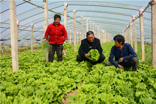 3月23日,商水縣平店鄉(xiāng)劉大莊村黨支部書記周思偉(中)和種植大戶周立新、張愛蓮夫婦查看菜苗及生菜長勢。該縣各級黨委采取“黨支部+扶貧基地+特色產(chǎn)業(yè)”等模式,發(fā)展了一大批特色產(chǎn)業(yè)基地,有效地促進(jìn)了農(nóng)業(yè)增產(chǎn)、農(nóng)民增收。②9
