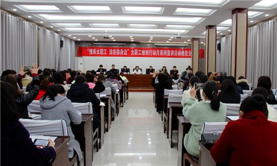 近日,鹿邑縣總工會開展“情系女職工·法在你身邊”法律知識宣講活動。鹿邑縣人大常委會副主任劉銀出席活動并致辭,市總工會法律保障部部長劉兆林、女職工部部長魏丹丹,鹿邑縣老干部局局長、縣婦聯主席郭艷芳出席活動,全縣各基層工會女主席、女工委員,各鄉鎮婦聯主任100余人參加活動,鹿邑縣總工會副主席李福云主持宣講活動。