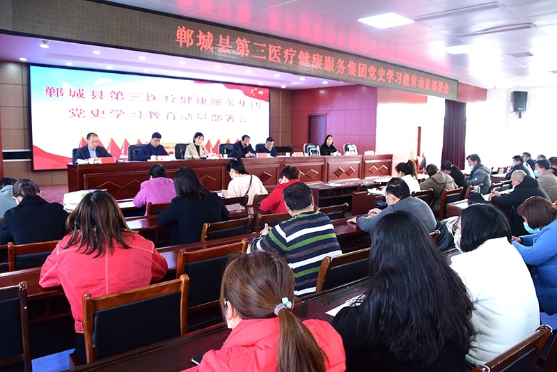 3月24日下午,中共鄲城縣第三醫療健康服務集團黨委在總醫院鄲城縣中心醫院大會議室召開黨史學習教育動員部署大會。縣衛健委黨組成員、副主任徐濤,第三醫健集團黨委書記梁麗,第三醫健集團黨委副書記、總醫院院長劉輝,總醫院副院長馬金來、黎娟出席,黨辦主任韓學貞主持會議。