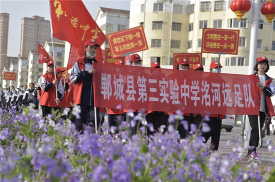 一路上,同學們在老師和交警的護送下,喊著響亮的口號走在洺河岸邊,欣賞著洺河美景。“平時沒有靜心觀看洺河,真沒有想到這么美,我為老家鄲城而自豪!”學生們特別興奮。