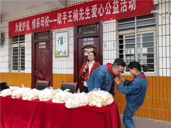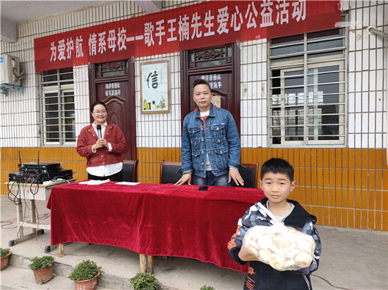 原來,該縣馬廠鎮回族小學畢業的歌手王楠,感恩母校現場為380余名師生送上了壓縮饃,還演唱了《最親的人》《新闖碼頭》等歌曲。很多留守兒童,吃著帶有暖意的壓縮饃,聽著悅耳動聽的歌曲,留下了感動的淚水。