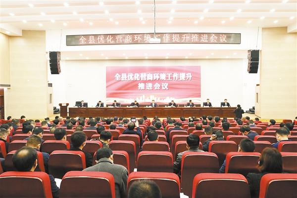 本報訊 (記者 李瑞才 文/圖) 近日,鹿邑召開優化營商環境工作提升推進會議(如圖)。會議全面貫徹習近平總書記關于優化營商環境的重要論述,貫徹落實全省優化營商環境工作推進會精神和全市營商環境提升年動員大會精神,動員全縣上下進一步提高認識、積極作為、聚焦重點、狠抓落實,推進營商環境持續優化,為“十四五”開好局起好步提供有力支撐。縣委書記李剛出席會議并講話。許四軍、李國際、宋濤、楊所超、侯自峰、金溪、程衛東等縣四個班子領導出席會議。