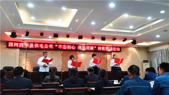 為深入推進廉政文化建設,樹立廉潔理念,提倡廉潔精神,營造廉潔氛圍,4月7日,西華縣供電公司舉行“不忘初心 清風頌廉”詩文朗誦活動,弘揚正氣,凝聚力量。該公司80余名黨員干部員工參加朗誦活動。