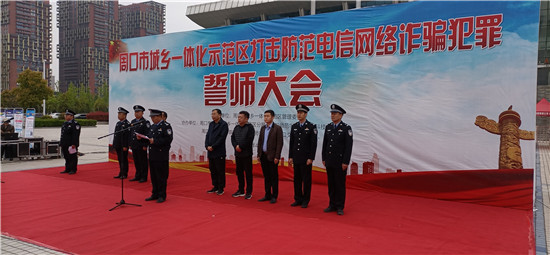 4月11日,市城鄉一體化示范區舉行打擊防范電信網絡詐騙犯罪千人誓師大會。示范區管委會二級調研員丁有亮,周口公安局示范區分局黨委書記、局長何學民出席大會。周口公安局示范區分局民警,示范區各鄉辦人員,周口師范學院、周口科技職業大學、周口交通技師學院師生代表近千人參加誓師大會。