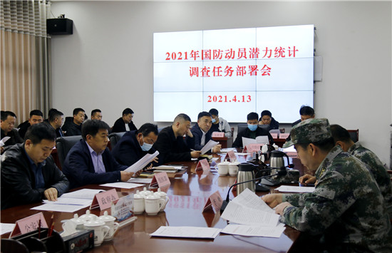 李峰主持會議并傳達了上級有關國防動員潛力統計調查相關文件精神,范亞光安排部署了2021國防動員潛力統計調查任務。