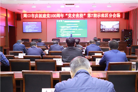 4月14日19時,周口市慶祝建黨100周年“黨史夜校”第7講準時開講,周口市城鄉一體化示范區分會場座無虛席,區全體班子成員及部分黨員干部認真收聽收看。