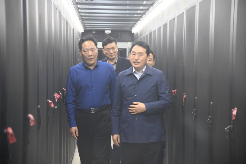 圖為:開封日?qǐng)?bào)報(bào)業(yè)集團(tuán)一行在周口報(bào)業(yè)大數(shù)據(jù)中心參觀學(xué)習(xí)