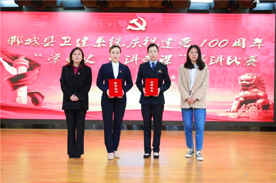 為切實推動衛健系統黨史學習教育,強化黨員干部隊伍建設,4月16日,鄲城縣衛健委組織開展衛健系統慶祝建黨100周年“學黨史、講黨課”演講比賽。縣衛生健康委黨組書記、主任付登霄參加活動并致辭。