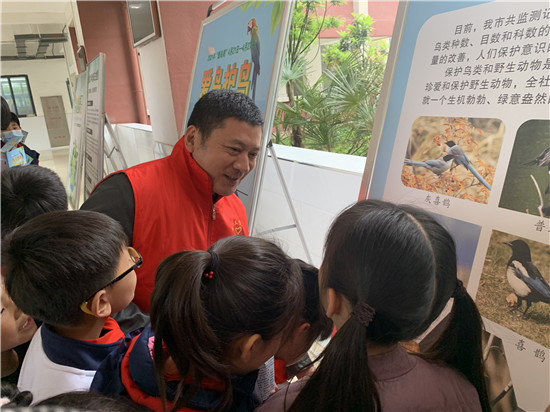 在項城市政和路小學(xué),工作人員通過展板介紹、開主題宣講課,讓學(xué)生認(rèn)識鳥類,走進(jìn)大自然,更好地保護(hù)和愛護(hù)鳥類。同時,他們還積極與學(xué)生互動,討論如何從身邊小事做起,保護(hù)鳥類,愛護(hù)大自然,使學(xué)生認(rèn)識到“鳥類是人類的朋友”,做到不干擾鳥類的遷徙,保護(hù)鳥類的棲息地,與鳥和諧共處。