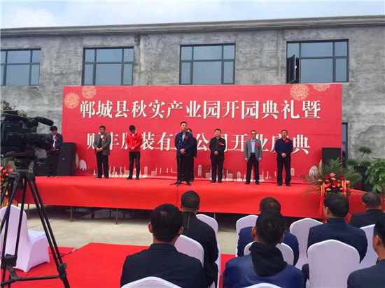 4月23日上午,鄲城縣秋渠鄉隆重舉行秋實產業園開園暨財豐服裝有限公司開業慶典。鄲城縣政協副主席崔家龍、秋渠鄉黨委書記梁輝、商務局副局長史超、全體鄉干部、鄉直單位負責人、駐村第一書記、財豐服裝有限公司全體員工等400余人參加慶典。