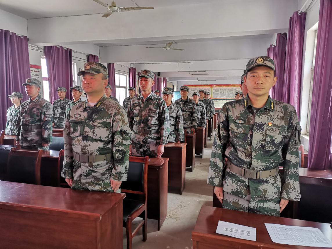 大會在《中國人民解放軍軍歌》中拉開帷幕,全鄉應急排30名基干民兵著裝整齊、精神飽滿的接受點驗。會上,寇二勇宣讀艾崗鄉民兵干部骨干任職決定和關于表彰應急排先進民兵班和個人的決定。隨后,全體基干民兵莊嚴宣誓,洪亮的誓言彰顯出艾崗鄉基干民兵的雄渾氣勢和拳拳報國之心。