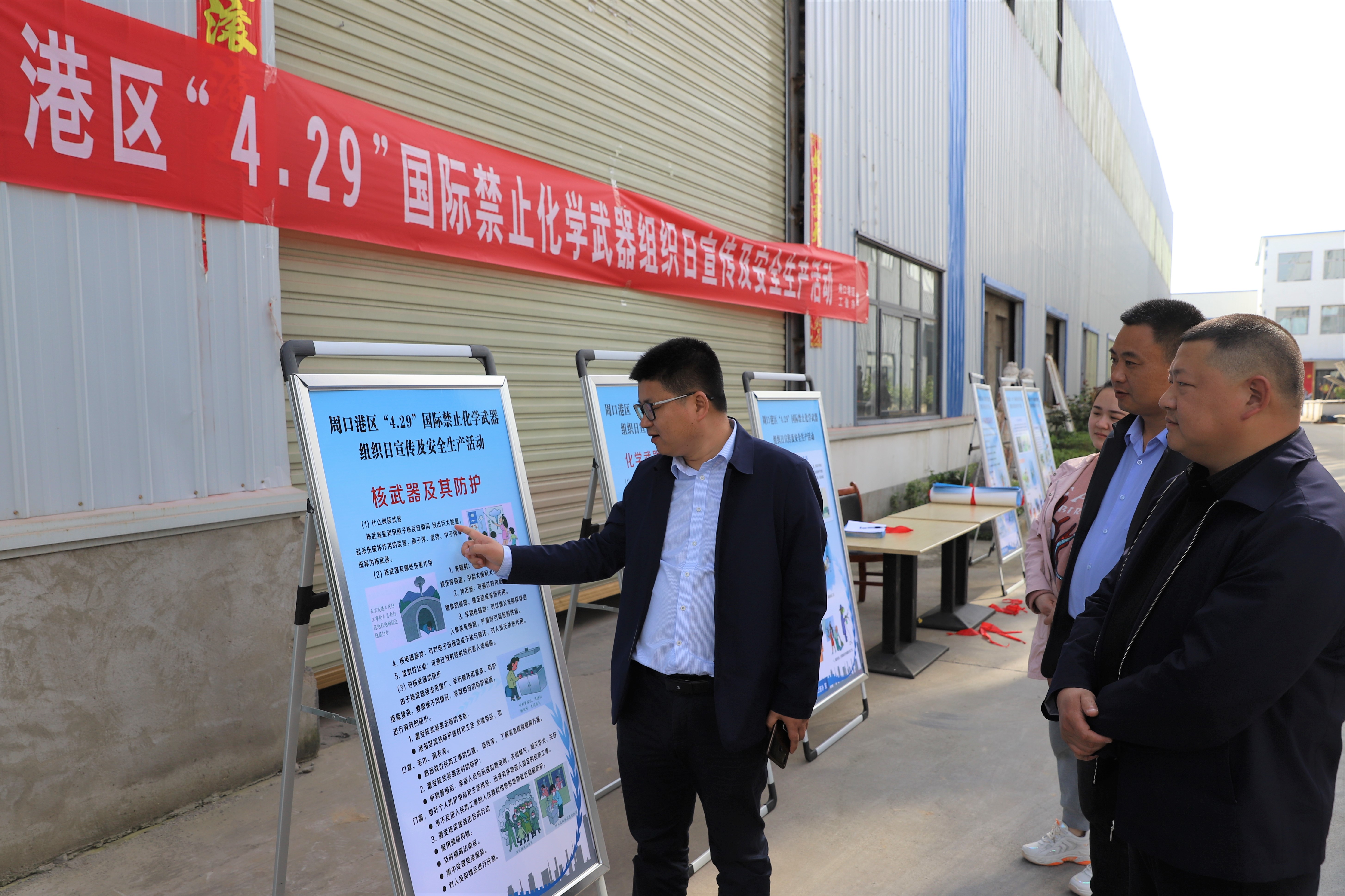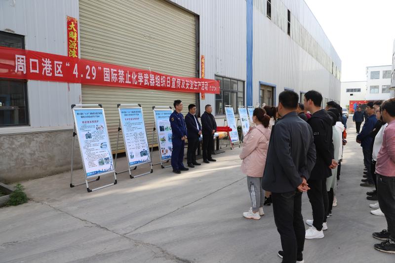 本報訊 (記者 宋風 通訊員 趙磊 文/圖) 為廣泛宣傳《禁止化學武器公約》履約工作的豐碩成果,維護我國大國形象,提高全社會對化學武器履約工作的認知度,按照市工信局安排部署,4月27日,周口港區工信辦聯合安全辦、消防工作室開展了“4.29”國際禁止化學武器組織日宣傳暨安全生產部署活動,港區30多家企業負責人參加活動。