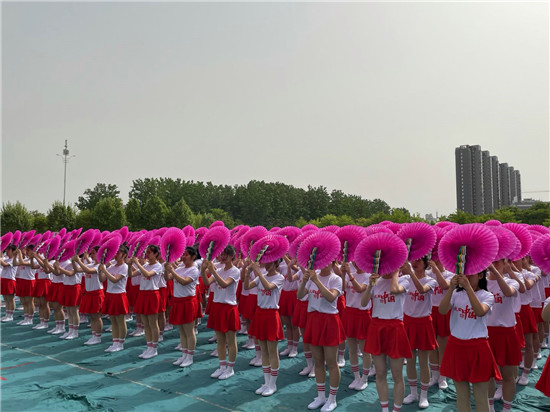 開幕式還舉行了彩扇舞、啦啦操、中國功夫、歌曲等文體表演。其中,彩扇舞《盛世花開》,由該校文化教育學(xué)院300名女生手持彩扇,跟隨著不同的音樂節(jié)奏變換著不同的色彩與隊形,依次拼出由鐮刀和錘頭組成的中國共產(chǎn)黨黨徽、象征體育精神的奧運五環(huán)、“慶祝建黨100周年”、“周職20周年校慶”等圖形和字樣,表達(dá)著對黨的熱愛和對學(xué)校的祝福。表演者王真真說:“大家協(xié)同配合才能把節(jié)目表演好,這個節(jié)目我們排練了一個多月。雖然很辛苦,但是看到節(jié)目順利演出,感到很有成就感。”