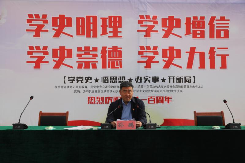 上午8時,黨史學習教育課在學校操場上正式開講,孫鵬面對端坐整齊的全校師生,通過講故事的方式,從三個方面展開講座。