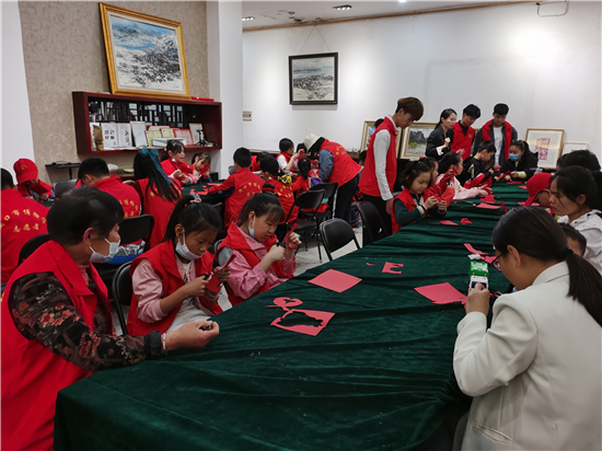 在華威紅色文化展覽館,孩子們瞻仰了毛澤東等黨的領(lǐng)導(dǎo)人的塑像、畫像等,又通過參觀紅色文物,上了一堂精彩的紅色文化課程,從真實的紅色物件中,追憶紅色經(jīng)典,學(xué)習(xí)堅定紅色精神,銘記光輝歷史,傳承紅色基因。他們學(xué)習(xí)了黨史知識后,明白今天的幸福生活來之不易。最后在華威學(xué)堂,他們還體驗了手工剪紙藝術(shù)。