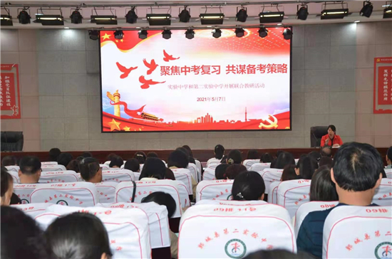 “在最后50天的復習備考中,促使我校全體九年級備考教師以更加精準的策略、更加靈活的方式、更加細致的備考策略,給全體考生的復習備考再加一把勁、再助一份力,助力他們成績再攀新高。使每一位學生在中考中都考出自己理想的成績,不在中考中留遺憾,不在成長中留遺憾,這也是我們積極籌備并參與本次兩校聯合教研活動的出發點和落腳點?!钡诙嶒炛袑W校長朱玉良說。②5