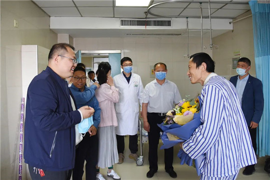 當天上午,鄲城縣人民醫院院長助理、工會主席張廣海,副院長郭環宇、鄭德璽,工會副主席、監察室主任杜彩霞等,到病房送去鮮花,祝賀王艷彬康復出院,并送去院長于健、黨委書記楊雨旺及全體領導班子的美好祝福。 接過鮮花,王艷彬激動地說:“住院以來,受到了各級領導的關懷慰問,羅書記請來省級著名專家為我做手術,還解決了醫療費用;住院期間,科主任趙玉斌、護士長張瑞對我照顧得無微不至,他們精心治療,悉心護理,讓我真切地感到了社會大家庭的溫暖。”