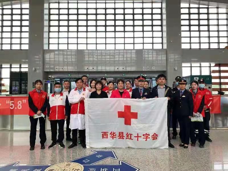 5月11日,西華縣紅十字會應急救護志愿服務隊來到西華高鐵站,通過現場開展自救與互救演示、發放自救宣傳資料等方式,向旅客和高鐵工作人員開展自救、互救知識宣傳活動。副縣長張翠霞到現場參觀指導。