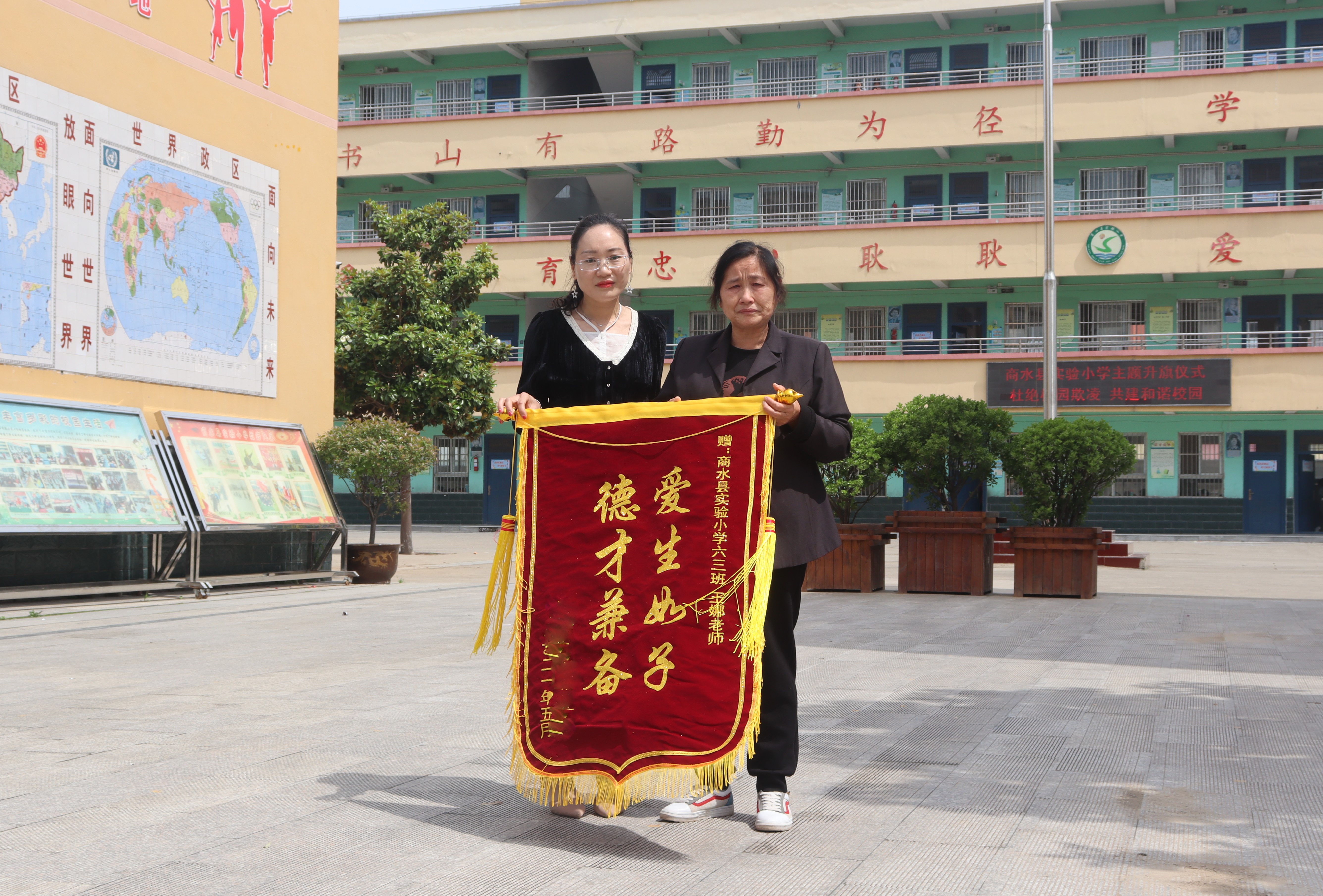 “謝謝王老師,謝謝王老師,要不是你的關心,俺那孫子真廢了。你就是俺的恩人,俺得給你送面旗。”5月17日上午,商水縣實驗小學六年級學生張樂樂的奶奶把一面繡著“德才兼備,愛生如子”的錦旗送到了商水縣實驗小學六(3)班班主任王娜娜的手中。