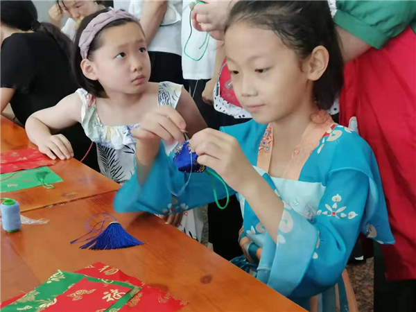 該館為孩子們提供了制作香囊的布料、針線、中藥材和羽絨棉填充物等材料,由專業手工老師現場視頻講解傳授制作香囊的方法,前來參加活動的30組親子家庭在志愿者的指導下輔助孩子們制作了屬于自己的端午香囊,孩子們興致高昂,收獲滿滿。此舉不僅讓孩子們了解了傳統文化知識和相關習俗,也鍛煉了孩子們的動手能力。③7