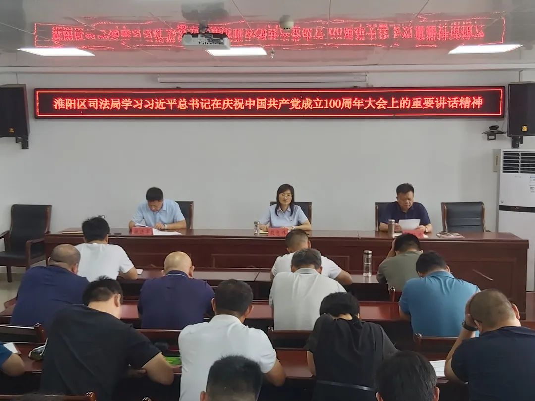 7月12日,淮陽(yáng)區(qū)司法局召開(kāi)全體會(huì)議,學(xué)習(xí)貫徹習(xí)近平總書(shū)記在慶祝中國(guó)共產(chǎn)黨成立100周年大會(huì)上的重要講話(huà)精神,研究部署貫徹落實(shí)工作。