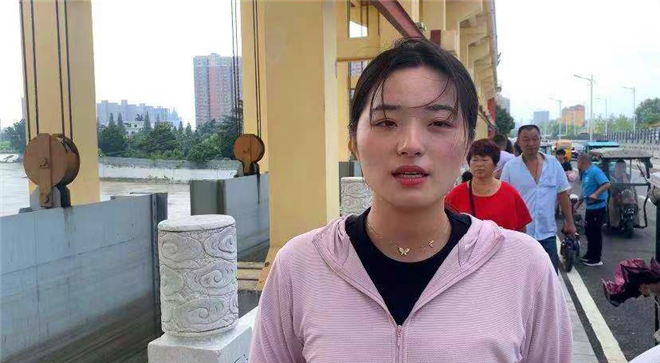 記者何晴在周口市中心城區漢陽中路周口大閘采訪