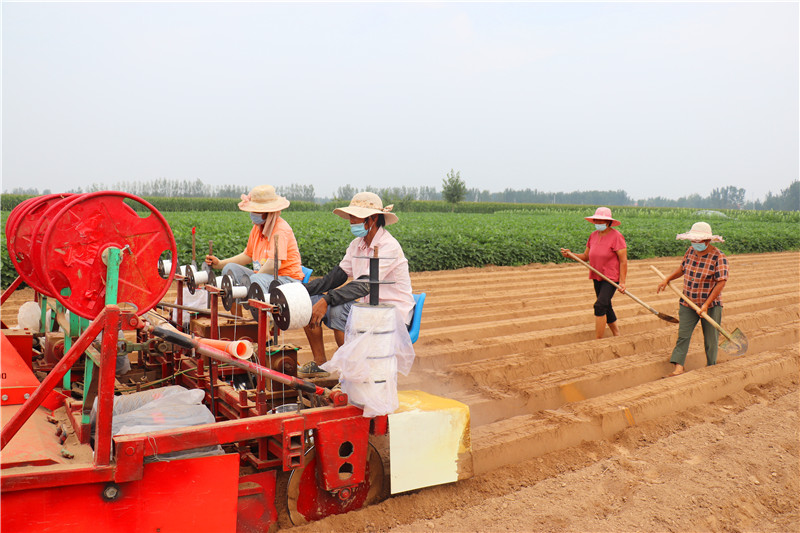 菜苗補栽全面展開。在韭園鎮(zhèn)蔬菜種植大戶李興華的胡蘿卜基地,2臺進口大型播種機、起壟機來來回回,拉滴灌管的農(nóng)民工滿頭大汗搶播搶種。截至目前,全縣設(shè)施蔬菜改種補種2600余畝,修復大棚982座,6個重點育苗基地已恢復育苗能力,近期已育苗800萬株。