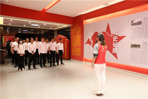 西華縣委黨員教育中心的紅色長廊里,一幅幅圖畫,一段段文字,見證著中國共產黨從誕生,到發展,到壯大,到帶領中國人民走向勝利的光輝歷程。通過志愿者講解員的精彩講解,全體黨員詳細了解了紅船精神、井岡山精神、長征精神、延安精神、西柏坡精神等色彩鮮明的紅色文化。