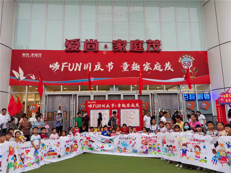 10月1日下午,在位于周口市中心城區七一路與中州大道交叉口的萬果園家庭茂商超前,近百名小朋友聚集在一起用手中的畫筆表達對祖國母親的祝福。