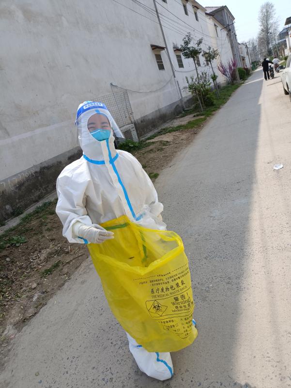 3月23日凌晨2點忽然接到護士長的電話,緊急集合,收拾東西支援太康核酸檢測采樣隊,來不及跟父母告別,便帶著簡單的隨身物品迅速來到醫院集合。此時大家已經整裝待發,沉默中帶著凝重,許夢蝶被這種氛圍激勵著,緊張的情緒逐漸平復:她深知這場抗疫之戰,必須要有頑強的意志,不怕困難和團結一心的精神,才能取得最終勝利!