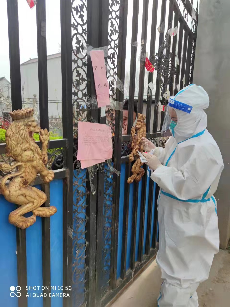 許夢蝶她們去的村分散較廣,從凌晨開始一個村挨一個村地跑下去,汗水很快濕透防護服,一般到下午2點,前來采樣的村民會逐漸變少,但是饑腸轆轆的她卻不能就餐,因為偶爾還會有村民過來采樣,如果脫下再穿防護服肯定會耽擱村民的時間,“我們本來就是為人民服務的,我們等等無所謂,不能讓老百姓來等我們”,許夢蝶當時這樣想著,然后婉拒了工作人員的就餐邀請,等沒有村民來采樣了再休息。她們吃完飯與大部隊集合的路上,突然隊長接到鄉長的電話說人手不夠讓回去采集封控村,她們立刻掉頭回去,沒有任何怨言,沒有任何要求。到了以后工作人員通知說這個村500多人要入戶采集,她們立即穿上防護服就開始了工作,和村干部及志愿者相互配合,拿著未集中核酸采樣的群眾名單,不停穿梭在村里的大街小巷、房前屋后、床邊炕頭進行現場核酸采樣。臨走時叮囑群眾日常防護不能大意,勤洗手、勤消毒、戴口罩,卻忘記了我們自己已經濕透的衣服還有灌鉛似的雙腿……