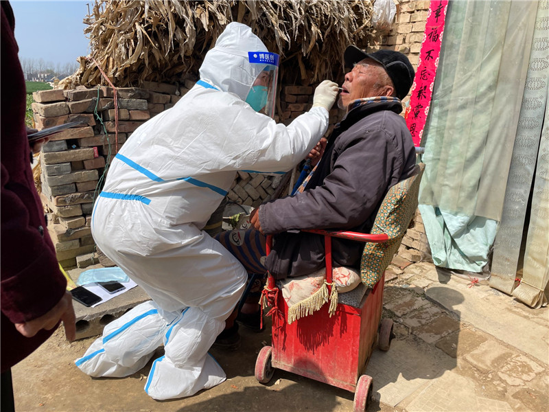 3月23日至4月13日,喬晶每天凌晨出發(fā),穿著密閉的防護(hù)服連續(xù)22天在太康馬廠工作。4月2日起,所有行政村實行入戶采集。從全民采樣到入戶采樣、封控人員實行一戶一管、重點管控人員一人一管、二十人混管到單管,加之村莊大、人員居住分散等,喬晶和她的同事面臨的是巨大挑戰(zhàn)!援太期間,每天都是30多攝氏度的高溫天氣,喬晶穿著密不透風(fēng)的防護(hù)服,戴著防護(hù)帽、防護(hù)面屏、口罩、手套,幾分鐘便汗如雨下。對此,她無怨無悔。
