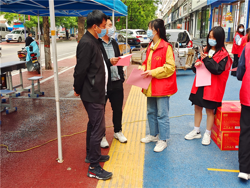 活動中,志愿者向新城路、行政路、小吃街等路段沿街商鋪發放《致全縣商戶的一封信》,講解疫情防控最新形勢和最新政策,提醒沿街商鋪商家落實好掃“兩碼”、測體溫、出入登記等各項疫情防控措施,引導群眾養成正確佩戴口罩、保持一米線距離等健康防護習慣,提醒人員不扎堆不聚集, 用志愿服務匯聚抗疫力量,筑牢群眾健康屏障。