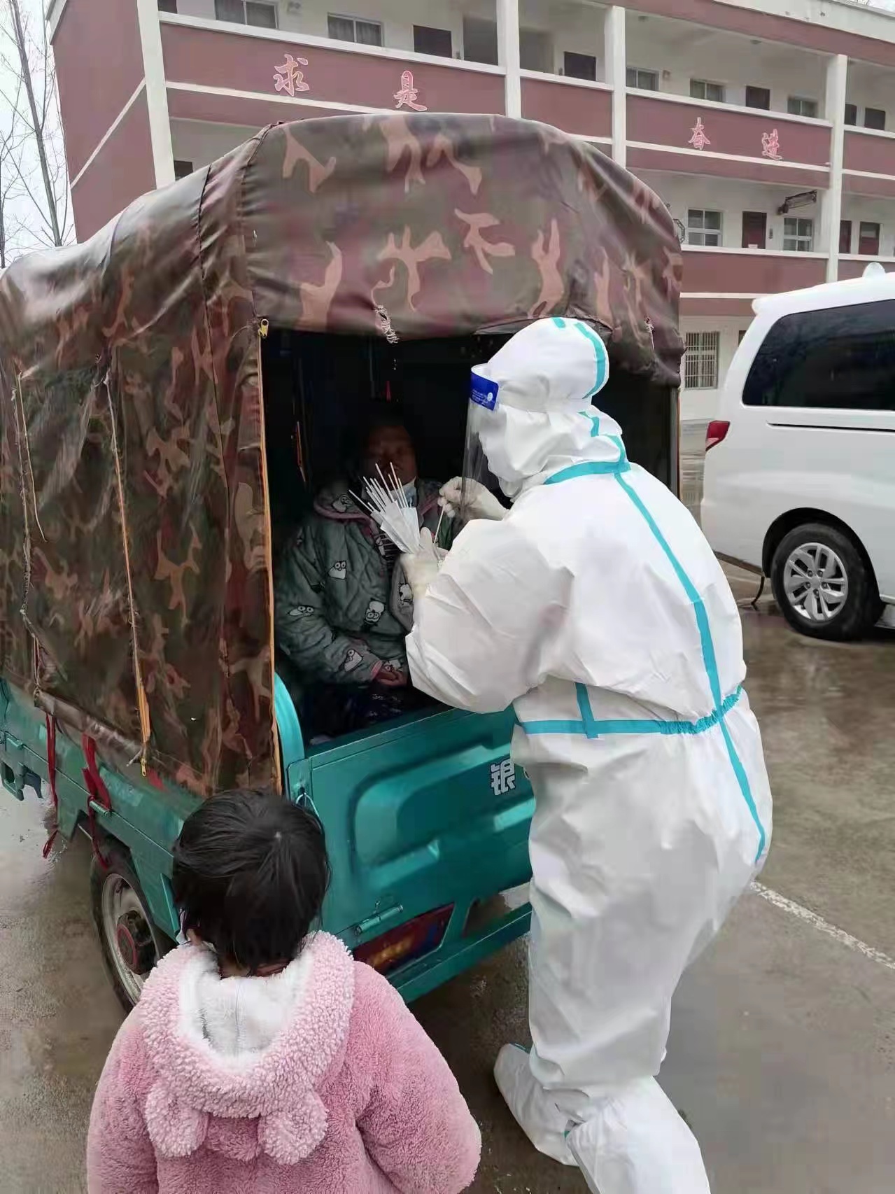 3月22日接到援太任務后,張俊華迅速和全縣200名醫護人員趕赴太康,并于次日凌晨3時醫療隊到達太康。“我們每天凌晨3點起床,5點到達采集點開始工作,不敢多吃飯,不敢多喝水,擔心穿脫防護服延誤采樣時間。中午餓了,簡單吃點東西后繼續工作……”張俊華回憶道。幾天后,為避免交叉感染,按照市衛健委要求,他們入戶采集核酸樣本。張俊華和其他隊員背著用塑料袋制成的背包,裝上棉簽和取樣管,一家一家地跑。一天下來,他們的腳上磨出了泡,臉上、手上都是勒痕。面對各種困難,他們迅速調整方案,一邊和社區人員組織群眾維持秩序,一邊進行核酸采集工作。工作臨近結束時,太康縣板橋鎮和常營鎮政府為他們頒發了榮譽證書。
