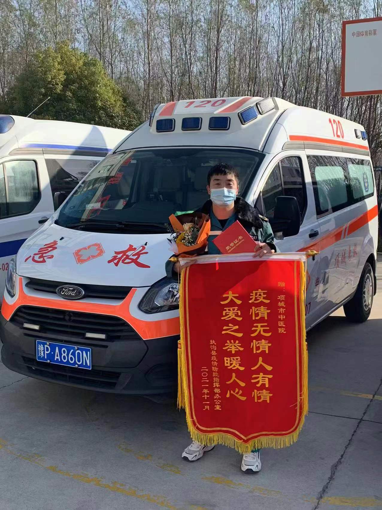 靳富壘,男,1993年人,他從2020年1月入職項城市中醫(yī)院救護(hù)車駕駛崗位,作為120救護(hù)車駕駛員,自新冠肺炎疫情阻擊戰(zhàn)打響以來,他就始終與醫(yī)護(hù)人員一起并肩作戰(zhàn),守好疫情防控的“第一道崗”。靳富壘每天大部分時間都在車上,接送患者、進(jìn)出醫(yī)院大門都需要用消毒液對車輛內(nèi)外進(jìn)行消殺,雖然穿著防護(hù)服、戴著口罩,但每天幾十次地來回噴灑,也會對身體造成一定的影響。靳富壘平日積極樂觀、身體健壯,他說:“做好防護(hù)措施就好,我們的工作就是這樣,要說一點不怕那肯定是假的,但當(dāng)時那個情景,既然我能派上用場,我肯定要上!”